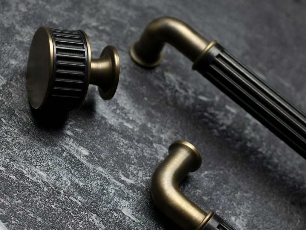 Inspired by the Stepped Labyrinth collection, Turnstyle’s new range of door levers are scaled down versions of the stepped brass work with some of their best-selling grip designs.