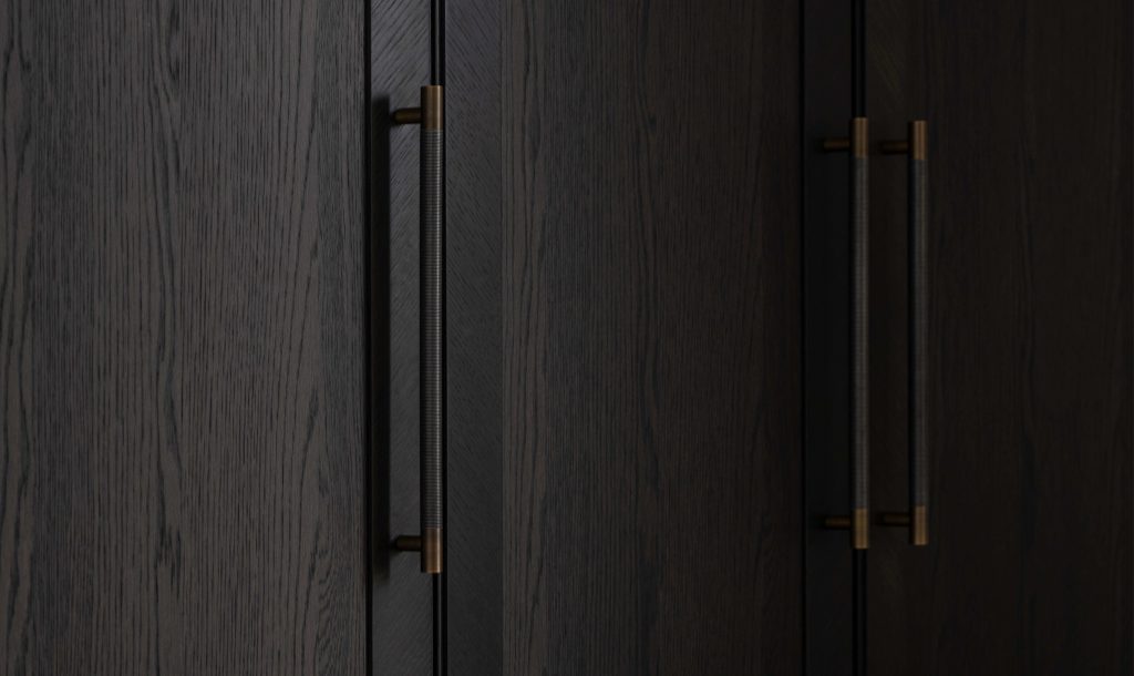 A combination of Fine Antique brass and Alupewt finish in the Wire recess collection from Turnstyle Designs was chosen for both door and cabinet handles.